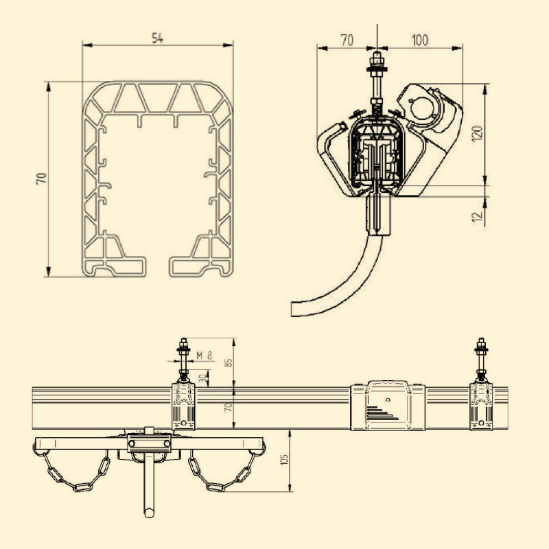 Las barras colectoras eléctricas móviles MOBILIS INNO se utilizan para sistemas de alimentación eléctrica de líneas rectas: